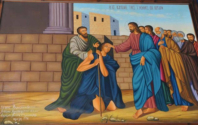 «И когда выходил Он из Иерихона с учениками Своими и множеством народа, Вартимей, сын Тимеев, слепой сидел у дороги, прося милостыни. Услышав, что это Иисус Назорей, он начал кричать и говорить: Иисус, Сын Давидов! помилуй меня. Многие заставляли его молчать; но он еще более стал кричать: Сын Давидов! помилуй меня. Иисус остановился и велел его позвать. Зовут слепого и говорят ему: не бойся, вставай, зовет тебя. Он сбросил с себя верхнюю одежду, встал и пришел к Иисусу. Отвечая ему, Иисус спросил: чего ты хочешь от Меня? Слепой сказал Ему: Учитель! чтобы мне прозреть. Иисус сказал ему: иди, вера твоя спасла тебя. И он тотчас прозрел и пошел за Иисусом по дороге». (Мк. 10. 46-52)