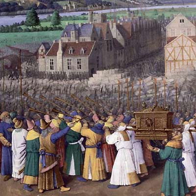 «Тогда сказал Господь Иисусу: вот, Я предаю в руки твои Иерихон и царя его, [и находящихся в нем] людей сильных; пойдите вокруг города все способные к войне и обходите город однажды [в день]; и это делай шесть дней; и семь священников пусть несут семь труб юбилейных пред ковчегом; а в седьмой день обойдите вокруг города семь раз, и священники пусть трубят трубами; когда затрубит юбилейный рог, когда услышите звук трубы, тогда весь народ пусть воскликнет громким голосом, и стена города обрушится до своего основания, и [весь] народ пойдет [в город, устремившись] каждый с своей стороны. И призвал Иисус, сын Навин, священников [Израилевых] и сказал им: несите ковчег завета; а семь священников пусть несут семь труб юбилейных пред ковчегом Господним. И сказал народу: пойдите и обойдите вокруг города; вооруженные же пусть идут пред ковчегом Господним. Как скоро Иисус сказал народу, семь священников, несших семь труб юбилейных пред Господом, пошли и затрубили трубами, и ковчег завета Господня шел за ними; вооруженные же шли впереди священников, которые трубили трубами; а идущие позади следовали за ковчегом, во время шествия трубя трубами.