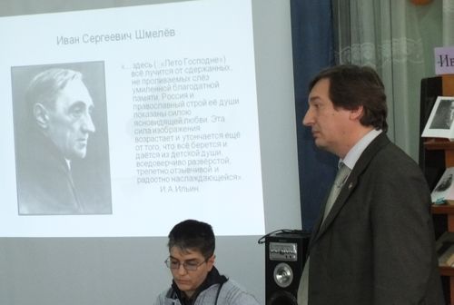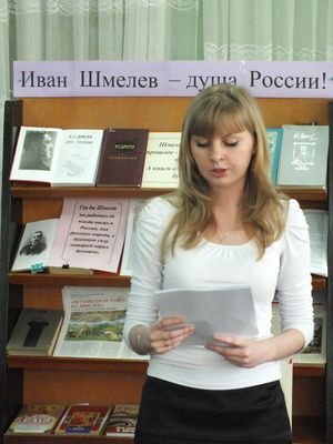 Собравшиеся в ЦГБ им. А. С. Пушкина студенты, школьники, учителя, журналисты, сотрудники библиотек говорили и слушали об Иване Сергеевиче и его прекрасном, глубоко народном, автобиографическом романе (выступление сотрудника библиотеки им. Н. К. Крупской Н. В. Чекиновой), о жажде праведности (студентка Шахтинского педколледжа Д. А. Жеребцова), и об идеальном образе России, воспетом И. Шмелёвым (студентка Шахтинского педколледжа К. А. Зверева), и о духовном свете произведения, и об использованных в нём устаревших словах (учащаяся лицея № 26 г. Шахты Е. А. Харламова и библиотекарь ЦГБ им. А. С. Пушкина Н. В. Сайбаталова).