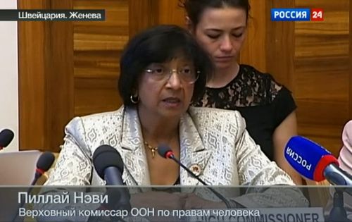 Конференцию открыла Верховный комиссар ООН по правам человека Наванетхэм Пиллэй. В своем выступлении она подчеркнула, что главной жертвой гражданской войны всегда становится население, нарушаются права женщин, разрушаются памятники культурного наследия, храмы. Растущая роль радикальных групп, таких, как «Джебхат ан-Нусра», включенная Советом Безопасности ООН в список террористических организаций, по мнению правозащитницы добавляет страданий гражданскому населению. Верховный комиссар считает необходимым, чтобы обе стороны конфликта уважали законы войны. Она выразила серьезную озабоченность в связи с жестокостями, которую проявляют обе стороны конфликта.