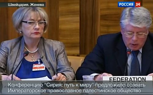 Постоянный представитель Российской Федерации при Отделении ООН в Женеве Алексей Бородавкин поблагодарил Н. Пиллэй за открытие конференции, а также Императорское Православное Палестинское Общество и Институт демократии и сотрудничества за их усилия, которые позволили провести это заседание. Российский дипломат выразил озабоченность нарушениями прав меньшинств, в том числе христиан, алавитов, друзов и других. Для разрешения сирийского конфликта существует только мирное решение. Только политическое урегулирование на основе Женевского коммюнике может возвратить домой беженцев. Россия продолжит свои усилия по созыву международной конференции по Сирии, которая дает надежду остановить кровопролитие и откроет дверь мирному и демократическому будущему Сирии,— заявил российский дипломат.