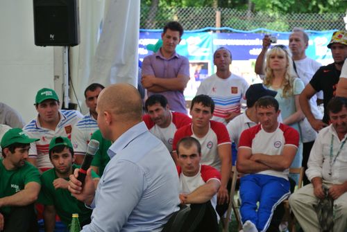Также Дмитрий Медведев посмотрел показательные выступления спортсменов по борьбе на поясах и армреслингу.