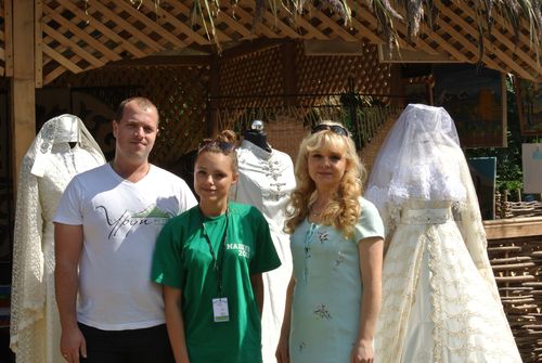 На экспозиции были выставлены картины, написанные маслом на пергаменте, оформленные деревом и украшенные цветами из козьей шкуры. На манекенах перед входом в павильон были представлены авторские костюмы национальной одежды, украшенные золотым шитьем.