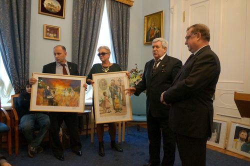 В церемонии дарения приняли участие представители оргкомитета конкурса: председатель Московского областного отделения Императорского Православного Палестинского Общества Юрий Смирнов, директор ДХШ «Солнцево» Татьяна Баутрук, директор Международного фестиваля детского творчества «Сыны Отечества» Людмила Апаева.