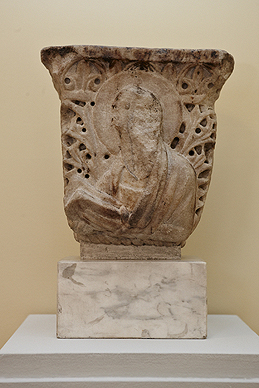 В первом зале выставлены фрагменты мозаик, фресок, рельефов и архитектурные детали IV-XV веков. Структурное оформление этого зала отчасти напоминает пространство византийского храма с его непременным синтезом различных видов искусства, созданных в разные эпохи. Детали архитектурного декора храма и мраморные иконы соседствуют здесь с деталями архитектурного убранства. Так, мраморная скульптура Иисуса Христа в образе Доброго Пастыря, найденная в развалинах церкви близ города близ Пандерма (Малая Азия), являлась частью несущей конструкцией алтаря; круглое по форме изображение Христа - тондо - завершало синтрон (архиепископский трон); рельеф с изображением птицы украшал амвон (сооружение в виде платформы, предназначенное для чтения богослужебных текстов); части мраморного блюда с библейскими сценами когда-то покрывали жертвенник. Многие архитектурные фрагменты и рельефы, представленные на выставке, прежде не экспонировались.