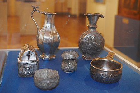 Памятники сгруппированы по материалам – предметы ювелирного искусства из золота, серебряные блюда и чаши, резная слоновая кость, бронза, керамика, стекло.