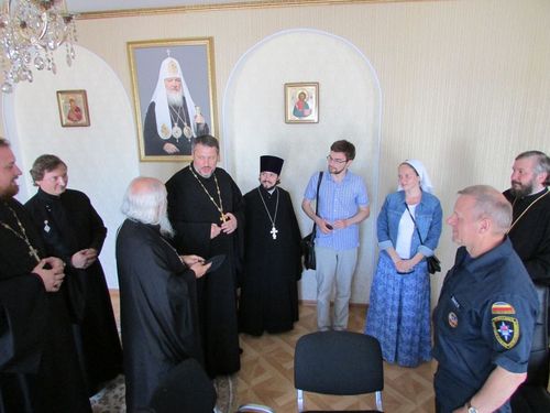 В совещании приняли участие: епископ Шахтинский и Миллеровский Симон, директор департамента по предупреждению и ликвидации чрезвычайных ситуаций Ростовской области Сергей Петрович Панов, пресс-секретарь Шахтинской епархии, действительный член Императорского Православного Палестинского Общества Илья Геннадиевич Шарков, руководитель отдела по социальному служению Шахтинской епархии иерей Владислав Касьянов, руководитель отдела по приграничному сотрудничеству Шахтинской епархии протоиерей Роман Амплеев и другие.