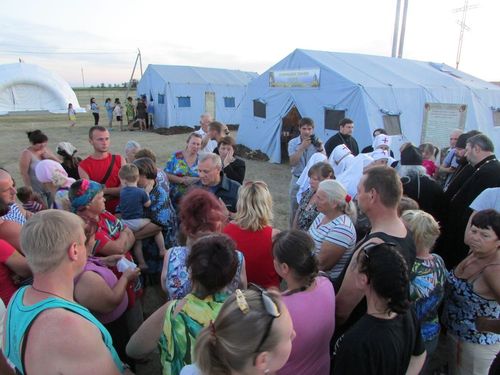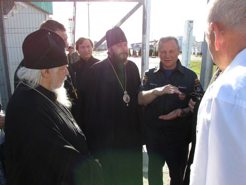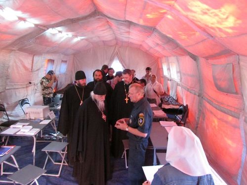 В г.Новошахтинске участники совещания посетили КПП, пообщались с российскими пограничниками, осмотрели воронку от снаряда, разорвавшегося на российской стороне границы и последствия этого взрыва. Затем делегация посетила пункт временного размещения беженцев в хуторе Черников, где непосредственно ознакомилась с ситуацией, жизнью, бытом, и проблемами беженцев. В данный момент в этом пункте размещено 275 человек. Епископ Пантелеимон лично пообщался с семьями из Украины, узнал о нуждах из первых уст и духовно поддержал переселенцев. Состоялось общение членов делегации и обмен мнениями с заслуженной артисткой России, кинорежиссёром Наталией Сергеевной Бондарчук, давшей высокую оценку деятельности Русской Православной Церкви в деле гуманитарной помощи и духовного окормления беженцев из Украины. Затем представители Церкви и общества посетили пункт временного размещения в г.Донецке, где также ознакомились с ситуацией, посетили часовню и вознесли молитвы о мире на Украине.