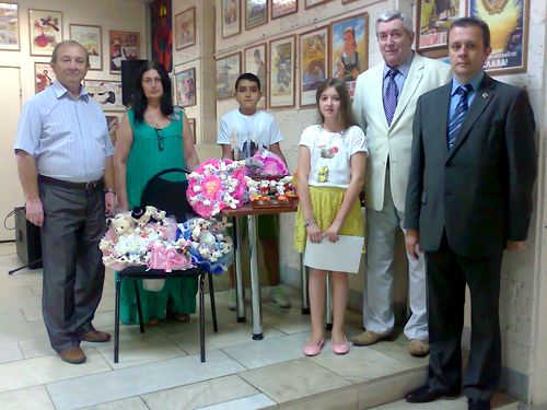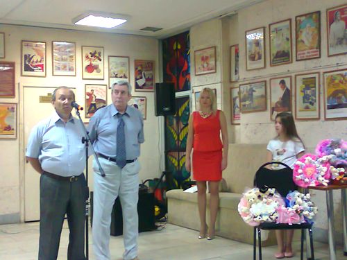 За лучшее оформление праздничных и подарочных букетов, сделанных в стиле модного сейчас направления дизайнерского творчества - из мягких игрушек, сладостей, лент - была награждена десятилетняя Валерия Герасименко. Грамоту Валерии вручили М.И.Калинин и Ю.П.Смирнов.