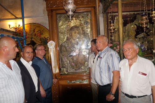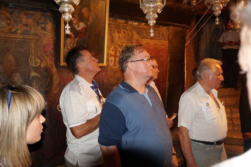 Члены делегации ИППО пообщались с духовенством. Делегацию Императорского Православного Палестинского Общества встречали представитель Иерусалимского Патриархата архимандрит Рафаил и священник Армянской Апостольской Церкви Хат Джундурян. Члены Императорского Православного Палестинского Общества с удовлетворением отметили, что благодаря объединенным усилиям всех трех Церквей, подходит к завершению первый этап реставрации базилики - ремонт старинной и местами прогнившей крыши. Вода, протекавшая сквозь многочисленные дыры в кровле, много лет угрожала древним мозаикам и фрескам, остальному убранству храма. В 2012 году базилика была внесена в список Всемирного наследия ЮНЕСКО, в прошлом году началась ее масштабная реставрация. После крыши будут отреставрированы витражи и внутренние интерьеры. В пожертвованиях, собранных на проведение работ, есть и доля России.