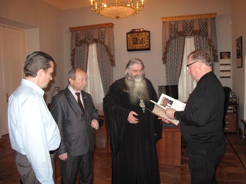 Архимандрит Тихон и А.Н.Панин обсудили ряд организационных вопросов по реализации предстоящих совместных проектов с заместителем Председателя ИППО Ю.А. Грачёвым, управляющим делами ИППО М.И. Калининым, главным советником Председателя ИППО по международным вопросам И.В. Петраковым и управляющим Центром ИППО С.К. Казаряном. Им также был преподнесен в дар новый альбом «Паломничества Ее Императорского Высочества Великой княгини Елисаветы Феодоровны по святым местам».