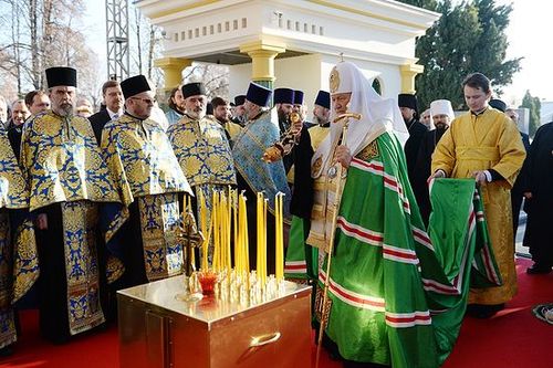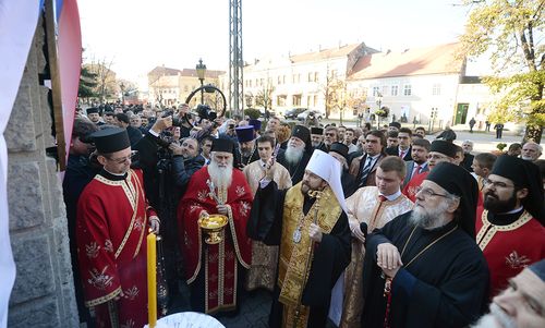 По благословению Святейшего Патриарха Кирилла освящение мемориальной доски возглавил председатель Отдела внешних церковных связей Московского Патриархата митрополит Волоколамский Иларион, почетный член Императорского Православного Палестинского Общества. В церемонии также приняли участие архиепископ Женевский и Западно-Европейский Михаил, епископы Сербской Православной Церкви Зворничко-Тузланский Хризостом и Сремский Василий, настоятель Подворья Русской Православной Церкви в Белграде протоиерей Виталий Тарасьев и секретарь Отдела внешних церковных связей Московского Патриархата по межправославным отношениям протоиерей Игорь Якимчук.