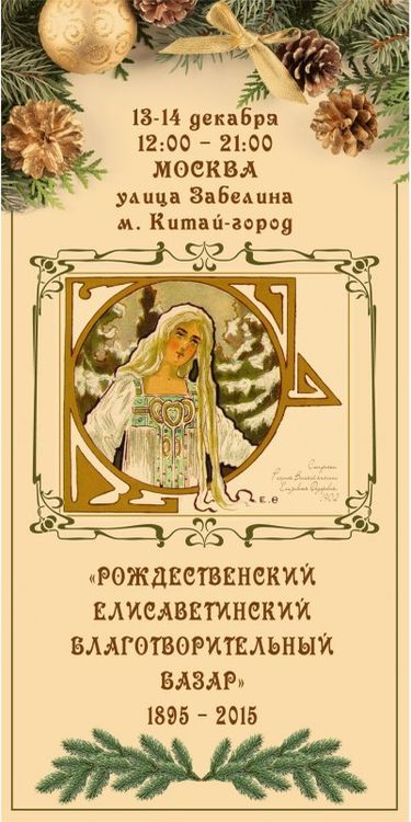 13-14 декабря, в субботу и воскресенье, в историческом центре Москвы состоится «Рождественский Елисаветинский благотворительный базар 1895-2015». Организаторы: Правительство Москвы, фонд "Елисаветинско-Сергиевское просветительское общество" и Императорское Православное Палестинское Общество.