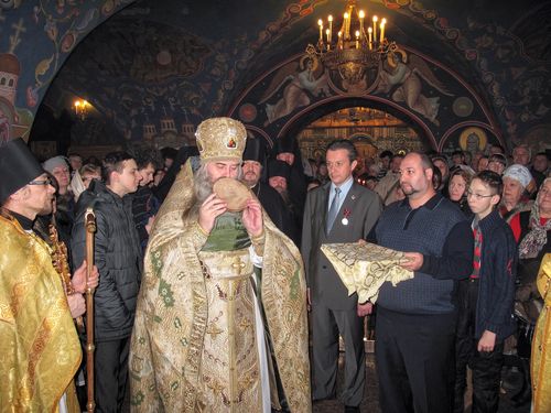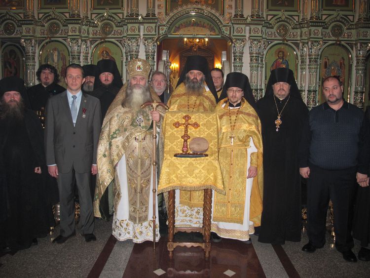 После выступлений архимандрита Тихона и А.Н. Панина все присутствующие в храме имели возможность приложиться к частице древа Закхея.