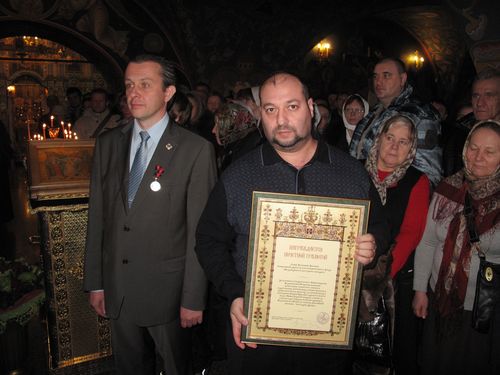 Также отец наместник уполномочил А.Н. Панина передать почетную грамоту Павлу Викторовичу Платонову: «За активное сотрудничество с Нижегородским Вознесенским Печерским мужским монастырем, совместное участие в издательских, архивно-изыскательских проектах, которые приоткрыли уже немало неизвестных страниц из жизни Палестинского Общества и его членов, а также за личное участие в деле передачи на вечное хранение в Вознесенскую Печерскую обитель величайшей святыни – части древа Закхея».
