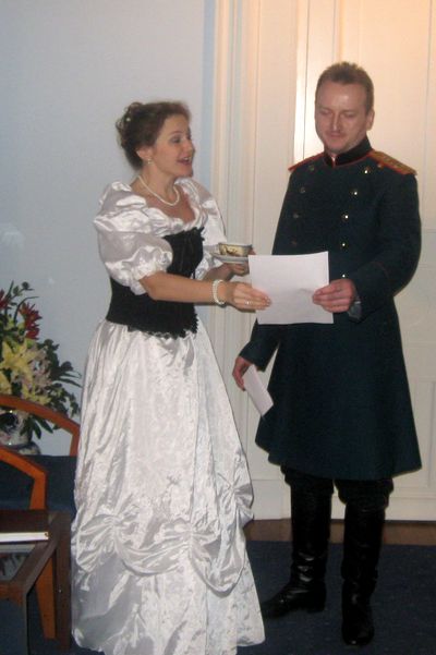 Под аплодисменты зрителей заместитель руководителя культурно-просветительской секции Владимир Никонов поблагодарил автора пьесы и вручил Ларисе Токаревой, недавно принятой в Общество, членский билет и знак.