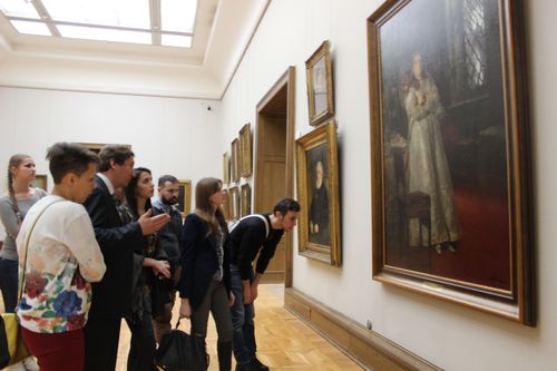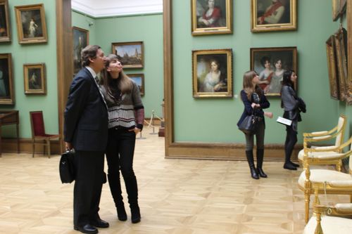 Продолжительной и обстоятельной получилась экскурсия в главный художественный музей страны – Государственную Третьяковскую галерею. В ряде залов: творчества И.Е. Репина, В.И. Сурикова, братьев А.М. и В.М. Васнецовых, М.В. Нестерова, М.А. Врубеля и в зале древнерусской живописи И.Г. Шарковым были прочитаны краткие лекции по истории ряда картин и икон. По ряду исторических картин был сделан искусствоведческий обзор.