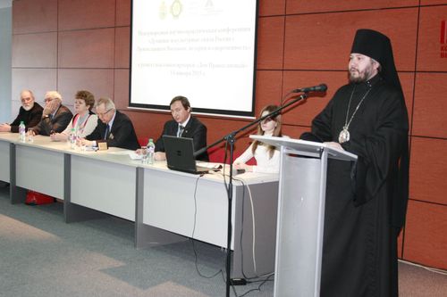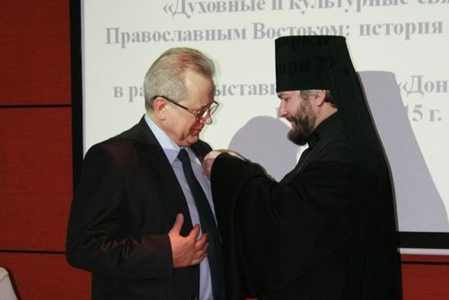 "Всечестные отцы, глубокоуважаемые организаторы и участники конференции, дорогие братья и сестры! В радости и в духовном ликовании поздравляю всех вас с великим и спасительным праздником Рождества Христова и Новолетием благости Господней! Сердечно приветствую участников и гостей международной научно-практической конференции «Духовные и культурные связи России с Православным Востоком: история и современность». Нынешний форум стал уже традиционным совместным проектом Шахтинской епархии, вузов донского региона и Ростовского-на-Дону регионального отделения международной общественной организации "Императорское Православное Палестинское Общество" при поддержке Иерусалимского отделения ИППО. Тема духовных и культурных связей, истории взаимоотношений Православного Востока и нашей страны важна и актуальна. Духовно богатая православная культура изначально несёт в себе возможность для соединения и обогащения многих национальных традиций".