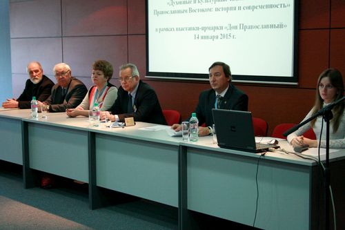 Далее были сделаны 15 докладов и выступлений, среди которых: "Значение Православного Востока для духовной и культурной жизни России" – пресс-секретаря Шахтинской епархии Ильи Геннадиевича Шаркова; "Святость Востока и Руси на языке скульптуры" – заслуженного художника России, академика Российской академии художеств, скульптора Сергея Михайловича Исакова.
