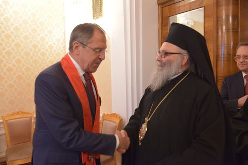 За поддержку мира на Ближнем Востоке Министр иностранных дел, почетный член ИППО Сергей Лавров отмечен высшей наградой Антиохийской Православной Церкви