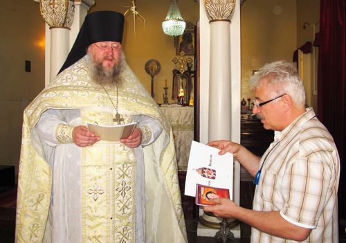 По поручению почетного члена ИППО Великой Княгини Марии Владимировны, иеромонах Никон передал представителям Историко-поискового клуба «Память России» А.В. Курышеву и И.В. Маликовой уникальный фотоальбом «Божией Милостию», изданный русским эмигрантами в 1957 году и уже давно ставший библиографической редкостью.