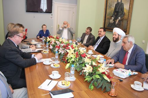 Сегодня в Центре Императорского Православного Палестинского Общества в Москве состоялась встреча Председателя Императорского Православного Палестинского Общества Сергея Степашина с Верховным муфтием Сирии Ахмадом Бадреддином Хассуном, который прибыл в российскую столицу для участия в заседании Группы стратегического видения «Россия-исламский мир». Верховного муфтия сопровождал Посол Сирии в Москве Рияд Хаддад.