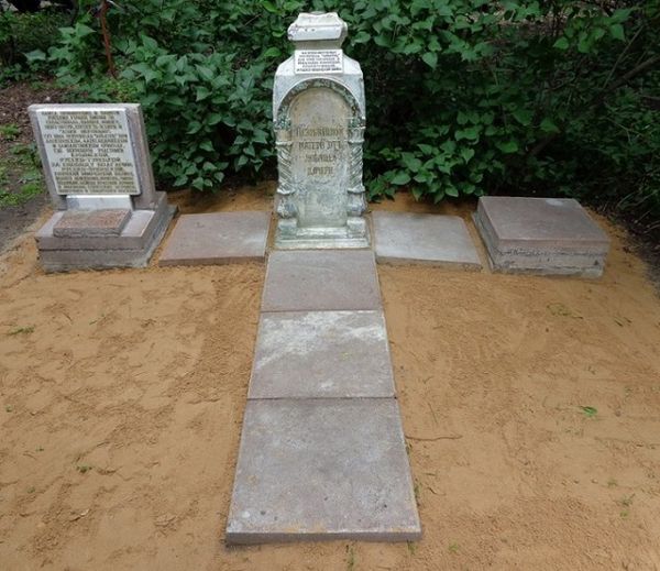 Надпись на надгробии гласит: "Незабвенной матери от любящей дочери".