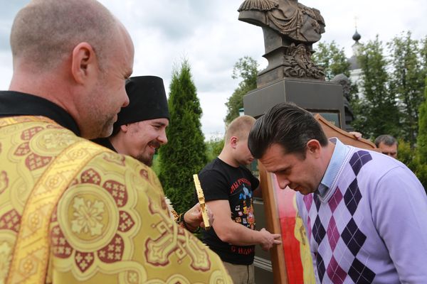 После проповеди все молящиеся приложились к чтимой иконе Святых Царственных Страстотерпцев и были окроплены святой водой.