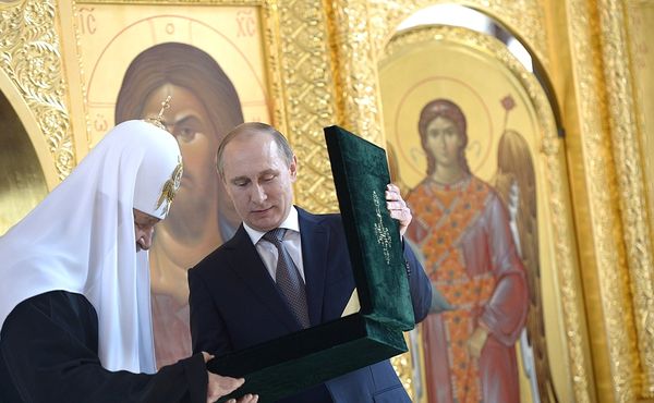Президент преподнес Патриарху икону Божией Матери конца XIX века. Предстоятель Русской Православной Церкви подарил главе государства икону святого Владимира.