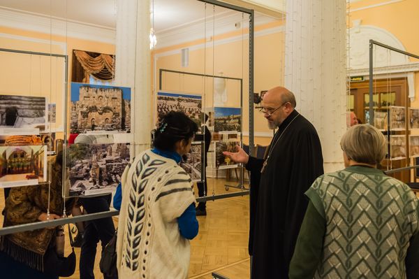 Экскурсию по выставке провел Владимир Шелгунов, побывавший на Святой Земле более десяти раз. На открытии выставки присутствовало около 200 человек всех возрастов. Они внимательно слушали комментарии фотографа и с интересом следовали за представленными в экспозиции фотографиями, которые как бы проводят зрителя паломническим маршрутом.