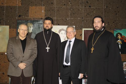 Профессор Е. Е. Несмеянов передал приветствие ректора ЮФУ. Со словами приветствия к собравшимся обратились: иерей Григорий Гриднев, представитель минобразования области А. Д. Сухенко, консул А. Д. Гомцян и В. П. Гурин.