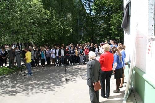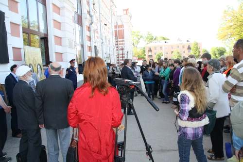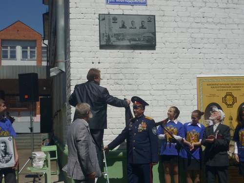 На церемонии у здания школы краевед Александр Сергеевич Днепровский, председатель президиума регионального отделения ВООПИиК, почетный архитектор России, рассказал, что «парад принимали верхами. Это не сотни, это тысячи людей прошли перед ними. Территория, где мы сейчас находимся стала демонстрацией могущества провинциального города».