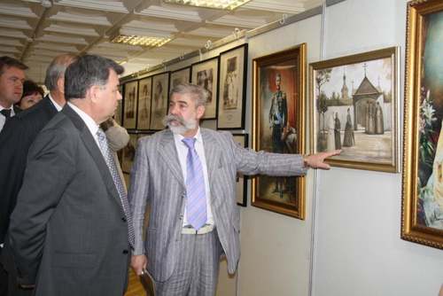 Выставку осмотрел губернатор Калужской области Анатолий Дмитриевич Артамонов. Председатель Калужского отделения ИППО Виталий Николаевич Гороховатский рассказал о глубинной изначальной связи Калужской земли с Домом Романовых. Именно праматерь Дома Романовых Евдокия Лукьяновна Стрешнева родилась на благословенной Калужской земле. И именно на благословенной Калужской земле Великой Княгиней Елисаветой Феодоровной, председателем ИППО, был построен Сергиев скит в память о своем мученически погибшем муже Великом Князе Сергее Александровиче.