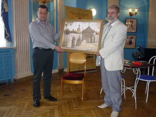 Председатель Калужского отделения ИППО представил картину «Прибытие Елисаветы Феодоровны в Сергиев скит Калужского отдела Императорского Православного Палестинского Общества, в память в Бозе почившего Великого Князя Сергея Александровича», написанную к 100-летию пребывания ею на благословенной Калужской земле.