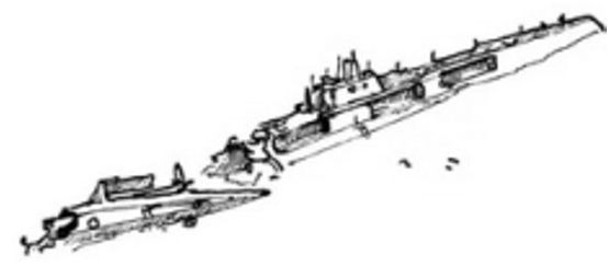 Корпус подводной лодки в кормовой части длиною около 12 метров разорван мощным взрывом и развернут почти на 180 градусов. С тех пор разными авантюристами делаются попытки подобраться к лодке.