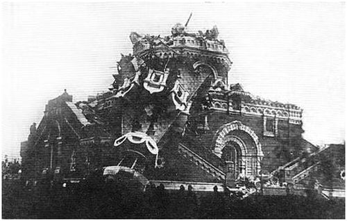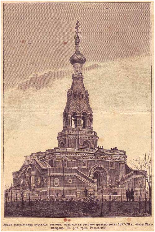 В итоге всех перипетий 6 декабря 1899 года на месте бывшего лазарета был открыт грандиозный храм-усыпальница русским воинам. Сооружен он был из гранита, в три яруса, с часовней, имел более двадцати двух саженей (1 сажень = 2, 13 м) в вышину и занимал площадь до двадцати квадратных саженей. Купол напоминал собор Василия Блаженного в Москве. «Освящение храма совершено было при участии Его Императорского Высочества Великого Князя Николая Николаевича, членов русского посольства и высших турецких сановников»,— так писала «Нива» в 1899 году. Николай Николаевич — сын почетного члена ИППО великого князя Николая Николаевича Старшего.