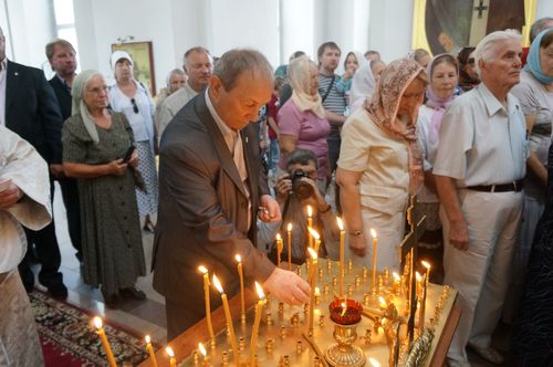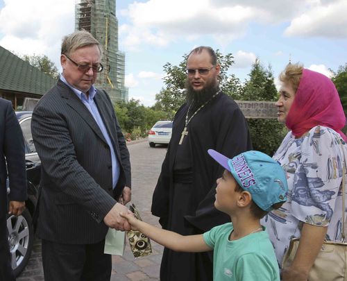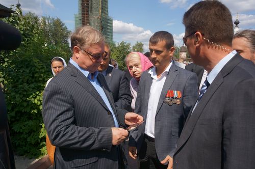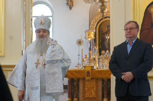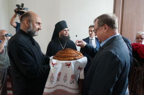 При входе в храм С.В. Степашину по старой русской традиции были поднесены хлеб-соль.