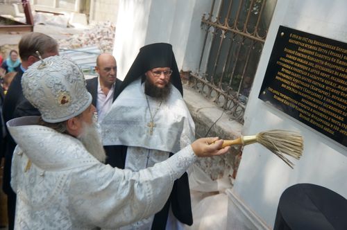 Сия доска торжественно открыта и освящена в честь 150-летия со дня рождения Великой Княгини Елисаветы Феодоровны и 100-летия со дня начала Первой Мировой войны».