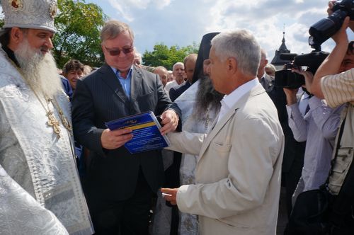 Сергей Вадимович Степашин от имени Императорского Православного Палестинского Общества наградил почетными грамотами инициаторов установки памятника и организаторов торжеств - Николо-Берлюковский мужской монастырь и благотворительный фонд «Возрождение культурного наследия», вручив их игумену Евмению, председателю правления фонда Александру Николаевичу Панину и генеральному директору фонда Семену Яковлевичу Ваксману. Как памятный подарок для обители Сергей Вадимович преподнес игумену Евмению изготовленную в технике гжель уменьшенную копию монастырской колокольни, которая сейчас активно восстанавливается.