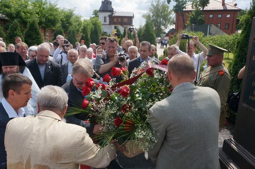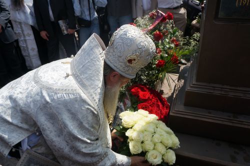 Право торжественно снять покрывало с памятника было предоставлено Преосвященному Роману, С.В. Степашину и А.Н. Панину. После снятия покрывала епископ Серпуховской Преосвященный Роман совершил освящение памятника, окропив его святой водой. От присутствующих делегаций к подножию памятника были возложены цветы с дарственными надписями.