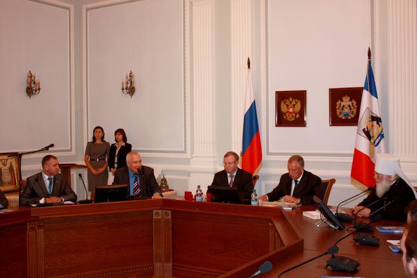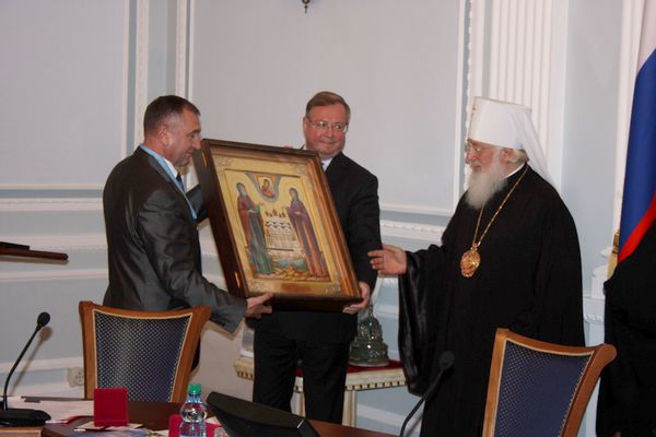 Митрополит Лев отметил, что он готов всячески поддерживать работу Императорского Православного Палестинского Общества на Новгородской земле. С. В. Степашин передал владыке в дар икону Петра и Февронии с частицами мощей для будущего