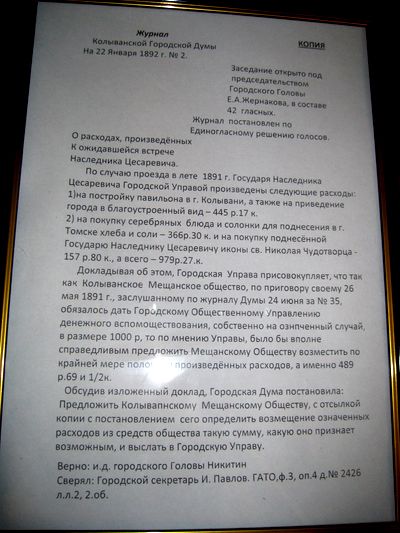 Но человек предполагает, а Бог располагает. Цесаревич Николай Александрович, по причине, ведомой только ему одному, не удостоил своим посещением Колывань, что стало историческим фактом.