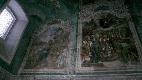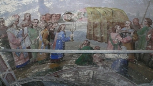 В начале 19 века на месте старой сгоревшей деревянной церкви в Санино были построены два храма, которые существуют до сих пор: летний — храм святого Николая Чудотворца и зимний - храм Покрова Пресвятой Богородицы. Стены храмов расписаны фресками, на которых изображены сцены из Евангелия. Теплый храм отапливался печами, поэтому многие фрески выцвели и потускнели. Несколько лет назад многие фрески начали проявляться и самовосстанавливаться без участия реставраторов. Первыми это заметили художники-иконописцы, занятые в реставрации иконостаса.