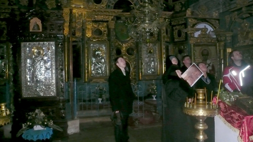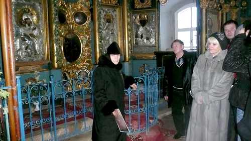 Настоятельница провела гостей по территории обители, рассказав об истории Свято-Никольского прихода, показав внутреннее убранство храмов – богато украшенный объемной резьбой иконостас, старинные иконы, красочные фрески, сюжеты которых посвящены Иисусу Христу, Пресвятой Богородице, событиям священной истории Ветхого и Нового Завета.