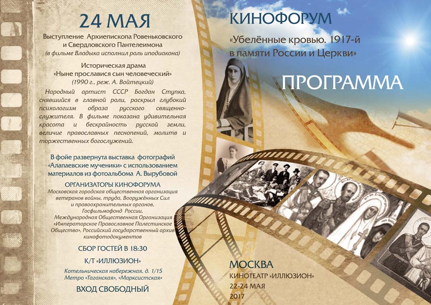 В фойе кинотеатра можно будет ознакомиться с выставкой фотографий «Алапаевские мученики» с использованием материалов из фотоальбома А. Вырубовой.