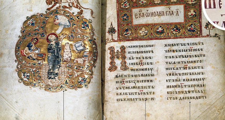 Теперь же на сайте РНБ созданы специальные проекты, посвящённые уникальным памятникам, среди которых и Остромирово Евангелие и Благовещенский Кондакарь.