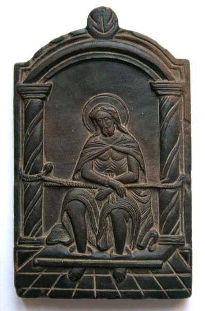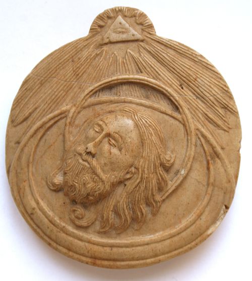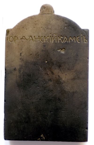 Илл.16. Спас в темнице. Резная икона на камне из Иордана. Конец XIX века. Палестина. Собрание А.А. Кирикова. На обороте резная надпись: «иорданский камеиь».
