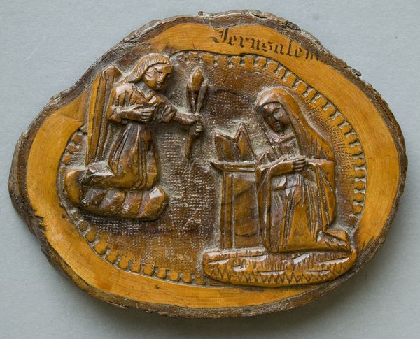 Илл. 15. Благовещение Богородицы. Резная икона на спиле оливы. Конец XIX — начало XX века. Иерусалим. Частное собрание. Вверху печать: «Jerusalem».