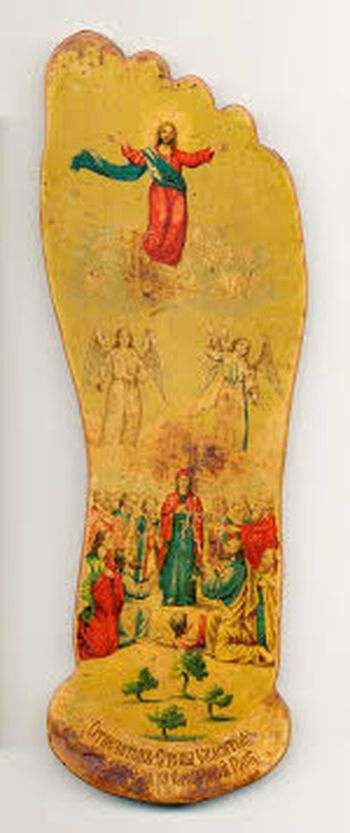 Илл.20. Икона. Вознесение Господне. 1890 год. Мастерская Е. И. Фесенко в Одессе. Собрание А.А. Кирикова. Внизу надпись: «Отпечаток Стопы Спасителя [находящийся] на Елеонской Горе».