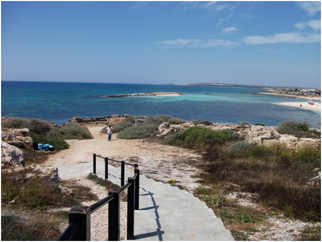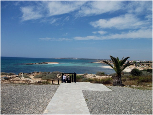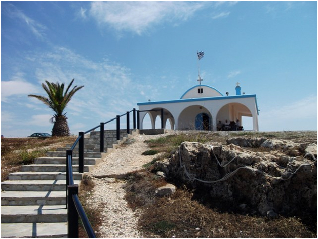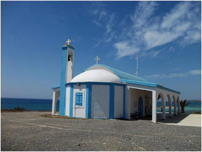 Необычайно красивая, белая с синим куполом и колокольней церковь и пещерная часовня Святой Фёклы Иконийской расположены на берегу бухты. Вокруг церкви – смотровая площадка и место для отдыха, где в жаркий кипрский день можно полюбоваться прекраснейшим видом на море. Церковь открыта для всех желающих её посетить.
